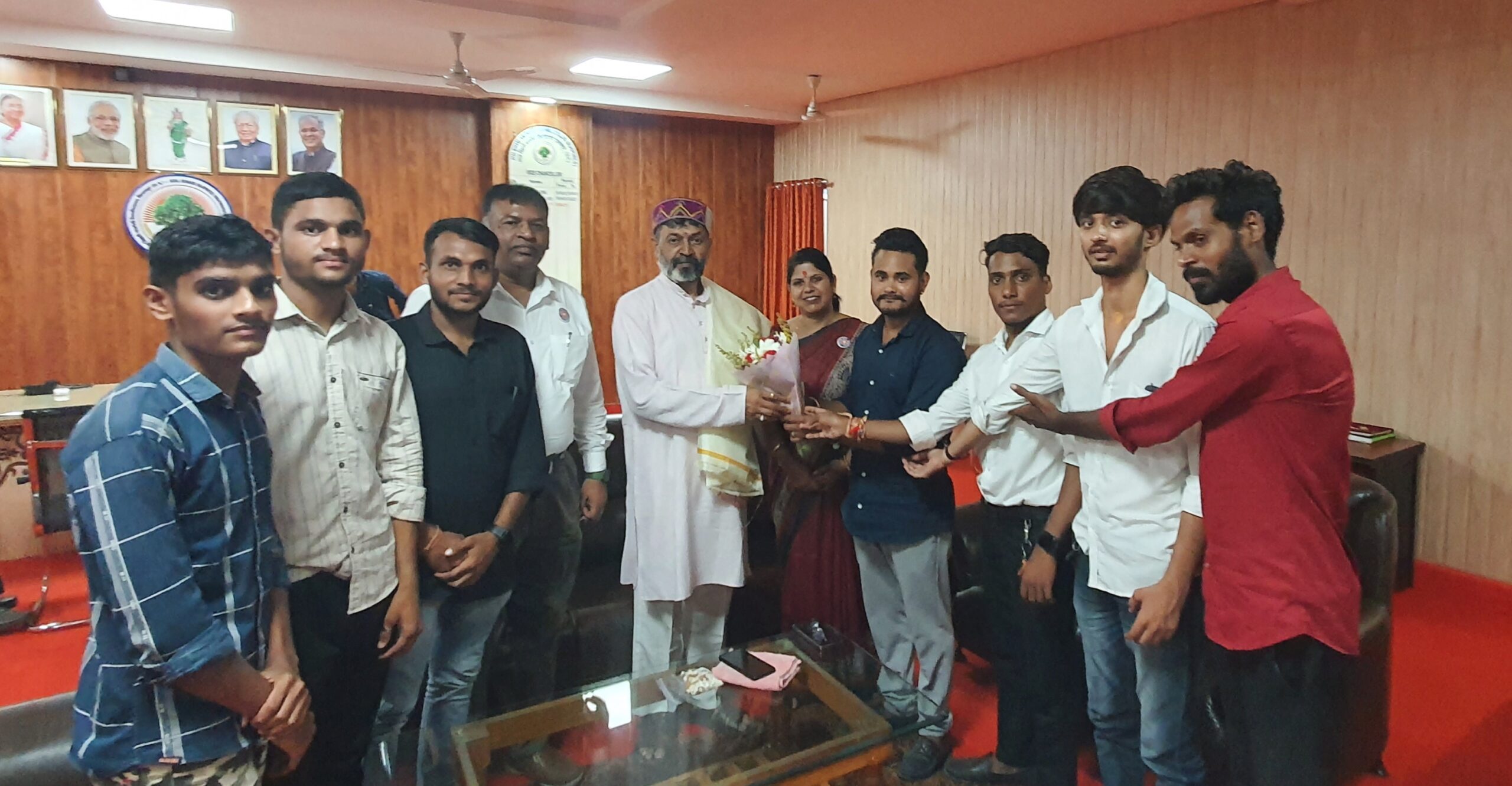 कुलपति को पुस्प गुच्छ भेंट कर धन्यवाद ज्ञापित करते समय – पुष्पराज साहू, प्रदीप सिंह , करन यादव,अखिलेश साहू,अवनीश पांडे, ओमप्रकाश ,जित्ती नरबद यादव,मानू ठाकुर,उदय सिंह आदि छात्रनेत एवम छात्र उपस्थित रहे।