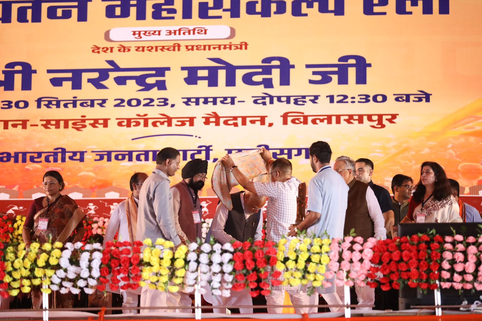 पीएम मोदी शनिवार 30 सितंबर को भारतीय जनता पार्टी के परिवर्तन यात्रा का समापन करने व परिर्वतन महासंकल्प रैली में बिलासपुर पहुंचे इस दौरान बिलासपुर की जनता ने पीएम मोदी के स्वागत में मोदी- मोदी के नारे लगाए तो वही मोदी ने अपने भाषण की शुरुआत जय जोहार से करते हुए बिलासपुर की जनता को भावविभोर कर दिया।पीएम मोदी ने कहा कि आपका सपना मेरा संकल्प है,जनता के सपनों को पूरा करने की मेरी गारंटी है.