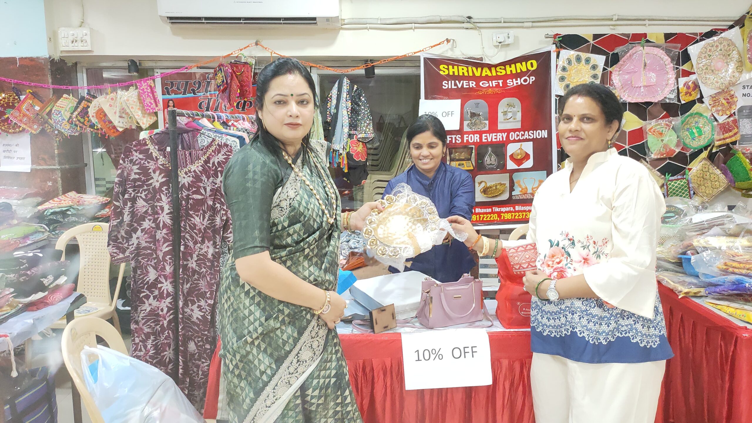 प्रदर्शनी स्थल पर पारंपरिक और आधुनिकता से जुड़ी वस्तुओं के दर्जनों स्टॉल्स लगाए गए थे। *साड़ियों, राखियों, हस्तनिर्मित आभूषणों, पूजा सामग्री, घरेलू सजावट और स्थानीय उत्पादों* ने लोगों को खूब आकर्षित किया। खास बात यह रही कि ₹2000 से अधिक की खरीदारी करने वालों को लकी ड्रा में शामिल कर *आकर्षक उपहार* भी प्रदान किए गए, जिससे खरीदारों का उत्साह दोगुना हो गया।