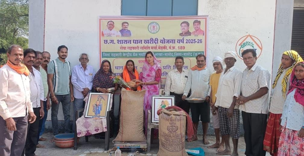 जिला मुख्यालय से 3 किलोमीटर दूर ग्राम मड़की स्थित सेवा सहकारी समिति मर्यादित मेडकी (पंजीयन क्रमांक 189) में आज राज्य सरकार की 15 नवंबर से प्रारंभ हुई धान खरीदी का शुभारंभ किया गया। मेडकी खरीदी केंद्र में प्रथम किसान के रूप में बघमरा निवासी श्रीमती सुखदई बाई निषाद की 18 क्विंटल 40 किलो धान की खरीदी की गई।
