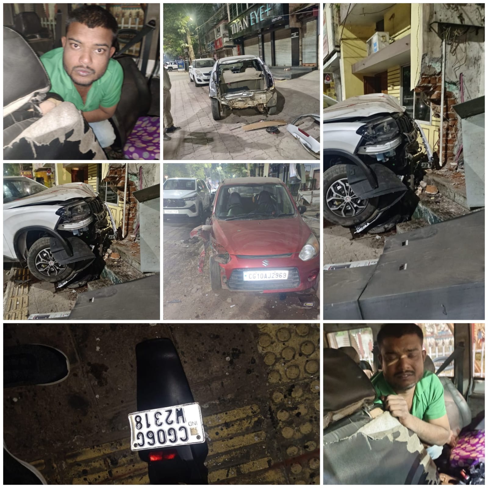 घटना 27 खोली मेन रोड क्षेत्र की है। बताया जा रहा है कि जयंत जोशी शुक्रवार देर रात जांजगीर–चांपा से बुकिंग कर वापस बिलासपुर लौटा था। रात करीब 1:30 बजे वह नशे की हालत में अपनी स्कॉर्पियो (क्रमांक CG10CB 8777) तेज रफ्तार में चला रहा था। इसी दौरान नियंत्रण खो बैठा और पहले एक मोटरसाइकिल को जोरदार टक्कर मारी। , जिससे वाहन बुरी तरह क्षतिग्रस्त हो गया। इसके बाद चालक की लापरवाही यहीं नहीं थमी। स्कॉर्पियो अनियंत्रित होकर आगे बढ़ी और तीन अन्य कारों को भी ठोकर मार दी, जिससे दो कारों को भारी नुकसान पहुँचा।