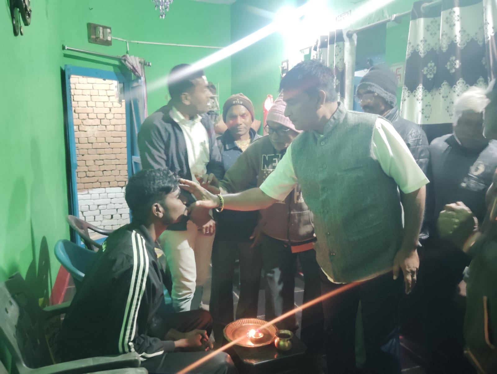 उन्हें **अहीर गुलाब, चंदन, साल श्रीफल, नारियल और मोमेंटो (प्रतीक चिन्ह)** भेंट कर सम्मानित किया गया। पूरे मोहल्ले में उत्सव जैसे हालात रहे।