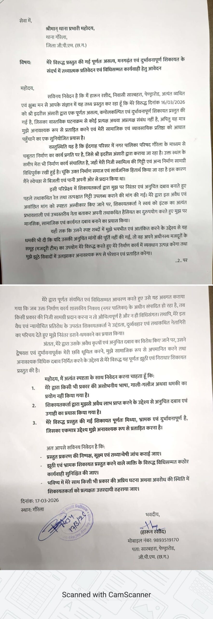आरोप है कि जब व्यवसायी ने इस दबाव के आगे झुकने से इनकार किया, तो उसकी छवि खराब करने के लिए उसके खिलाफ गौरेला थाने में झूठी शिकायत दर्ज करा दी गई। इस पूरे घटनाक्रम को स्थानीय स्तर पर “ठेकेदारी की आड़ में दबंगई” के रूप में देखा जा रहा है।