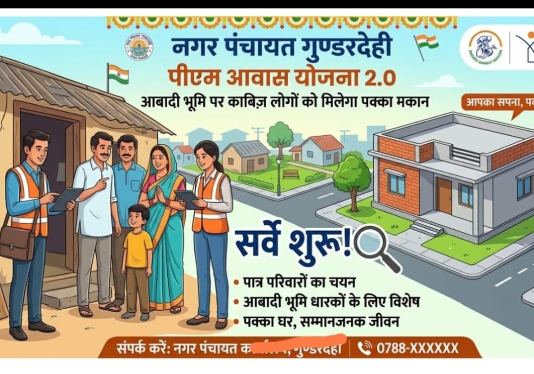 *नगर पंचायत गुंडरदेही में पीएम आवास योजना 2.0 का सर्वे शुरू, गरीबों को मिलेगा पक्का मकान*