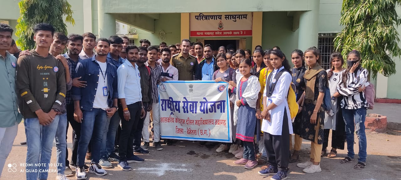 बेमेतरा _शासकीय कोदूराम दलित महाविद्यालय नवागढ़ के छात्र छात्राओं ने राष्ट्रीय सेवा योजना NSS के बैनर तले नवागढ़ थाना परिसर में विशेष शिविर लगाकर स्वच्छता कार्य किया गया जिसमें राष्ट्रपिता महात्मा गांधी के चित्र में पूजा अर्चना कर नवागढ़ थाना प्रभारी अजय कुमार सिन्हा के द्वारा किया गया तत्पश्चात थाना प्रभारी को राष्ट्रीय सेवा योजना के प्रभारी निर्मल कुमार परमेश्वर पात्रे के द्वारा पुस्तक व बैंच भेंट कर सम्मानित किया गया फिर स्वच्छता कार्य प्रारंभ हुई जिसमें महाविद्यालय नवागढ़ के छात्र-छात्राओं ने राष्ट्रीय सेवा योजना के स्वयंसेवकों ने हिस्सा लिया था जिसमें नवागढ़ थाना के मुख्य द्वार से लेकर अंदर के मैदानों को साफ किया गया फिर स्वच्छता के प्रति लोगों को जागृत रहने का संदेश भी दिया इस मौके पर एन,एस,एस प्रभारी निर्मल कुमार महाविद्यालय राष्ट्रीय सेवा योजना के अध्यक्ष परमेश्वर पात्रे सहित बड़ी संख्या में छात्र छात्राएं रहे जिसमें मुख्य रुप से राष्ट्रीय सेवा योजना के सक्रिय कार्यकर्ता शिखा गेडाम,युवराज वर्मा,भीष्मदेव ,समीक्षा,प्रिया,नैना,मानषी,नरेंद्र,गजेंद्र,अनिल,जनविजय,भानु,निखिल चौबे,सुनीति,सुरेंद्र,सोमेश,महंत,अवंतिका,पल्लवी,हिना,राहुल,पंकज,भागीरथी,मुस्कान सहित बड़ी संख्या छात्र छात्राएं शामिल रहे अंत में थाना प्रभारी अजय कुमार सिन्हा ने सभी को धन्यवाद ज्ञापित किया पात्रे ने बताया की इसके बाद नवागढ़ शहर के अलग अलग सरकारी संस्थाओं पर इसी प्रकार शिविर लगाकर स्वच्छता कार्य किया जायेगा ।