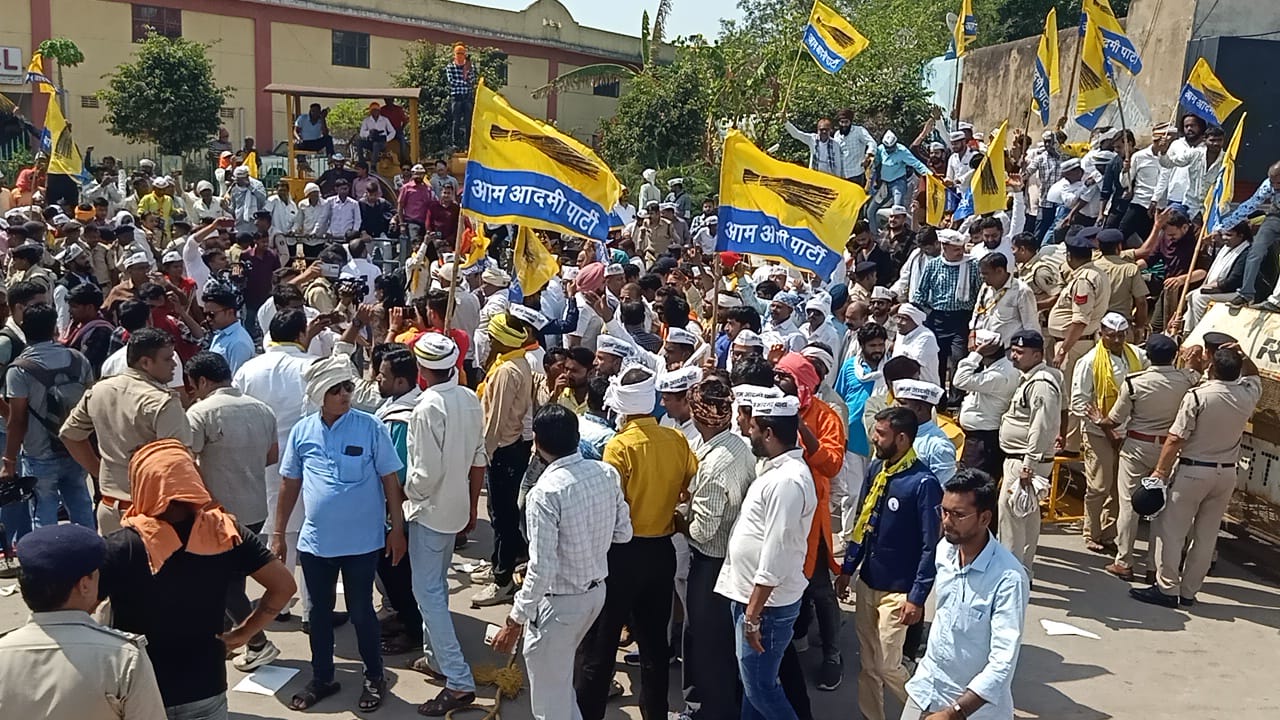 *’आप’ कार्यकर्ताओं और पुलिस के बीच हुई झूमाझटकी, पुलिस ने बैरिकेट लगाकर कार्यकर्ताओं को रोका*