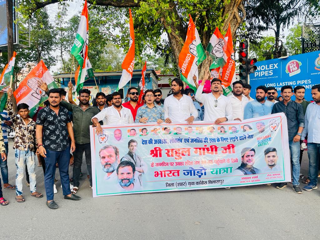 बिलासपुर। राहुल गांधी जी के जन्मदिन के अवसर पर चार दिवसीय भारत जोड़ो संदेश यात्रा अलग-अलग वार्डो में 16 जून से जिला शहर अध्यक्ष शेरू असलम के नेतृत्व में भारत जोड़ो पदयात्रा की जा रही थी