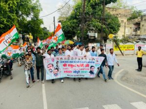 आज राहुल गांधी जी के जन्मदिन के उपलक्ष पर हरिभूमि चौक से पद पदयात्रा का आगाज किया गया शहर का भ्रमण करते हुए लोगो तक राहुल गांधी जी का संदेश एवं ताना शाह रवैया अपनाने वाली केंद्र में बैठी मोदी सरकार के कुनीतियो वां बेरोजगारी महंगाई जैसे तमाम मुद्दों को लेकर आम जन तक पहुंचाया गया एवं पदयात्रा करते हुए नेहरू चौक में समापन की गई जिला शहर अध्यक्ष शेरू असलम ने कहा भारत जोड़ो संदेश यात्रा का मुख्य उद्देश्य भारत में फैलाए जा रही सांप्रदायिक माहौल को मोहब्बत में बदलने के लिए सम्मानीय राहुल गांधी जी ने जो 3500 किलोमीटर की पदयात्रा कश्मीर से कन्याकुमारी तक की है उसका परिणाम यकीनन आने वाले वर्ष 2024 के चुनाव में देखने को मिलेगा युवा कांग्रेस जमीनी स्तर में मजबूती से काम करेगी